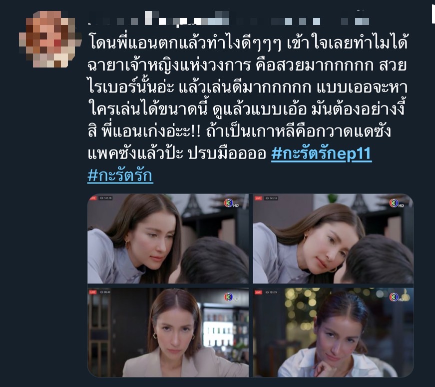 เปรี้ยงสุดอะไรสุด! แฟนๆ กดไลก์รัวกับฉากเด็ดหลัง “กะรัต” ที่สวมบทบาทโดย “แอน ทองประสม” อัพเลเวลอารมณ์จัดเต็มทั้งชวนฟิน อมยิ้ม หัวเราะ ร้องไห้ โกรธ เรียกว่าครบทุกอารมณ์ใน 3 ตอนล่าสุดกับละครเรื่อง “กะรัตรัก” ที่ยิ่งดูยิ่งทวีคูณความสนุกมากขึ้นเรื่อยๆ กวาดกระแสคำชมในโลกโซเชียลจนติดเทรนด์ทวิตเตอร์ประเทศไทย