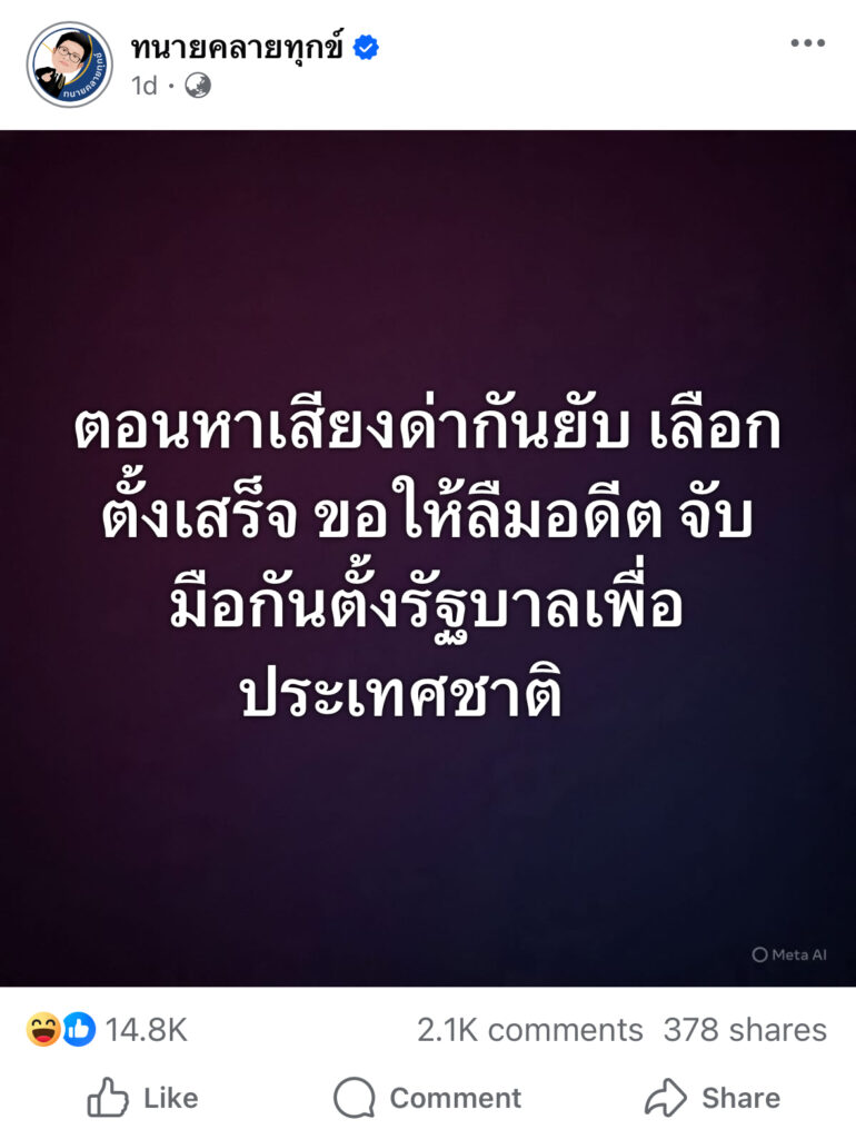 คนแห่ถูกใจ! ทนายเดชา โพสต์ นักการเมืองขอให้ลืมอดีต จับมือตั้งรัฐบาล