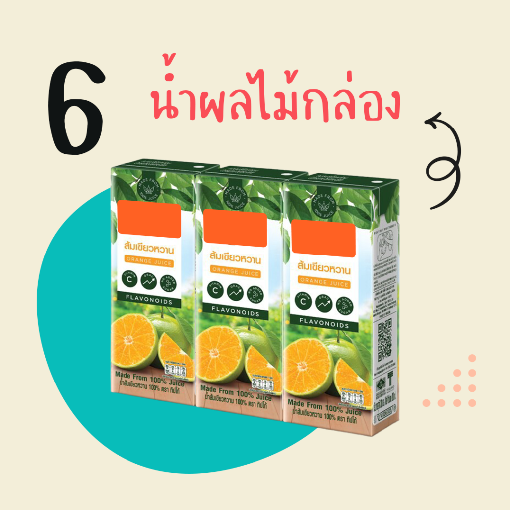 ไม่ว่าจะน้ำส้ม น้ำแอปเปิ้ล หรือแม้แต่น้ำผัก น้ำกล่องเหล่านี้ให้ผลเสียมากกว่าผลดี ปัญหาของน้ำผลไม้คือปริมาณน้ำตาลที่สูงพอๆ กับน้ำอัดลม คุณต้องเข้าใจก่อนว่าผลไม้มีน้ำตาลแต่จะมากหรือน้อยขึ้นอยู่กับชนิด ดังนั้นต่อให้คุณดื่มน้ำผลไม้ที่บอกว่าไม่ใส่น้ำตาล แต่คุณก็ยังได้รับน้ำตาลจากผลไม้อยู่ดี ประการที่สองน้ำผลไม้กล่องไม่ได้ทำมาจากผลไม้จริง ส่วนใหญ่เป็นหัวเชื้อที่สกัดมาอีกที ส่วนน้ำผักก็เช่นเดียวกัน ถ้าพลิกอ่านฉลากด้านหลังจะเห็นว่าส่วนผสมหลักได้แก่น้ำผลไม้ที่มีรสชัดและหวานจัด เช่น องุ่น แอปเปิ้ล ฯลฯ นำมากลบรสชาติผักที่ไม่อร่อยแต่ต้องใส่มาเพราะโฆษณาไว้แล้ว เช่น แครอทหรือขึ้นฉ่ายซึ่งจะอยู่ท้ายๆ ของส่วนผสมที่ใส่มาน้อยมาก ควรเปลี่ยนมากินผลไม้ลูกๆ ที่ถึงแม้จะมีน้ำตาลแต่ก็ยังได้วิตามิน เกลือแร่ และไฟเบอร์
