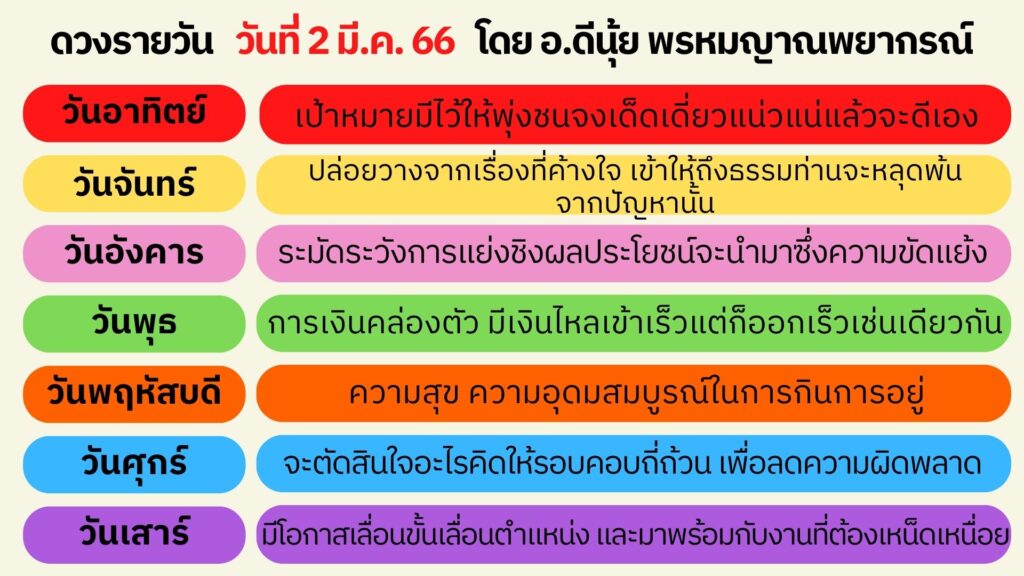 ดวงประจำวันที่ 2 มีนาคม 66
