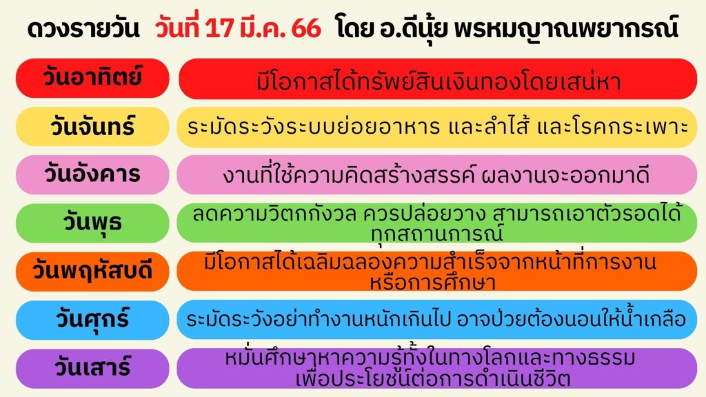 ดวงประจำวันที่ 17 มีนาคม 2566