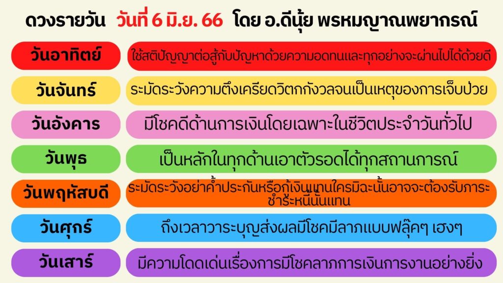 ดวงประจำวันที่ 6 มิถุนายน 2566