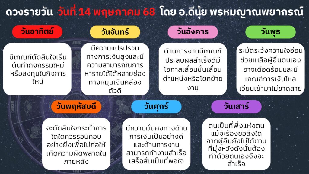 ดวงประจำวันที่ 14 พฤษภาคม 2568
