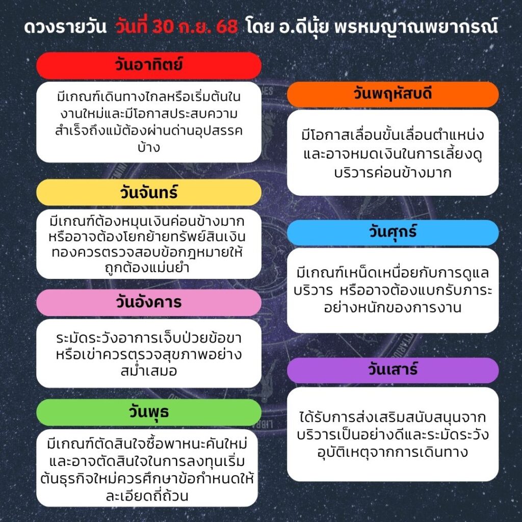 ดวงประจำวันวันที่ 30 กันยายน 2568