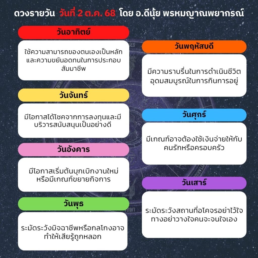 ดวงประจำวันที่ 2 ตุลาคม 2568