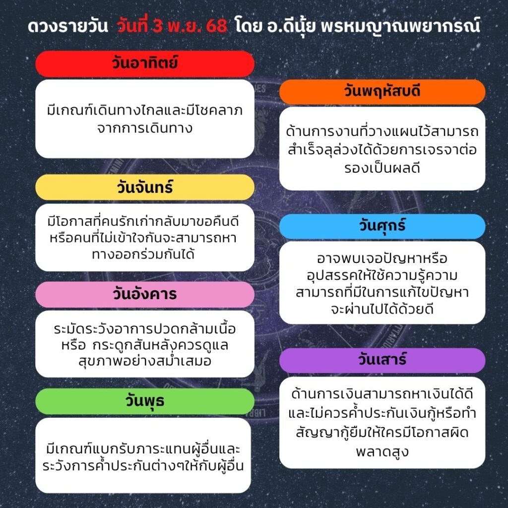 ดวงประจำวันวันที่ 3 พฤศจิกายน 2568