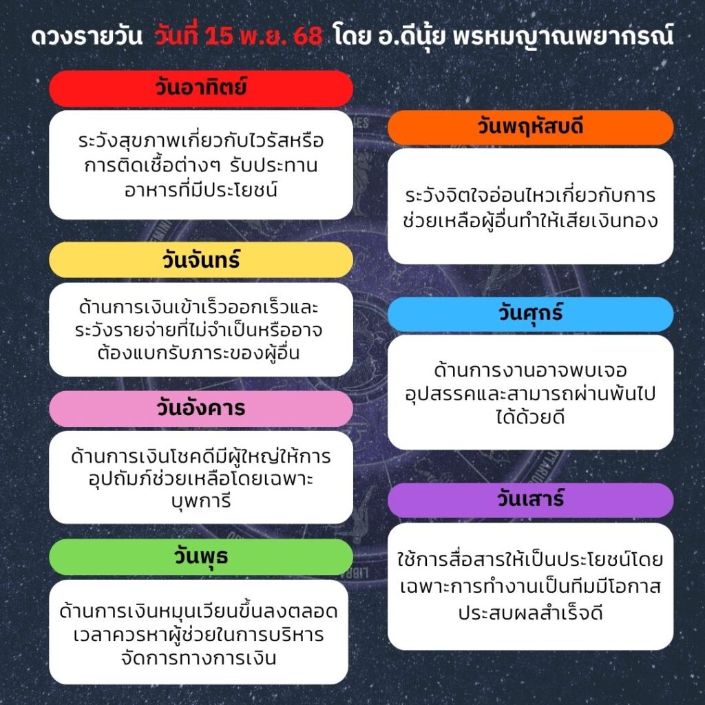ดวงประจำวันที่ 15 พฤศจิกายน 2568