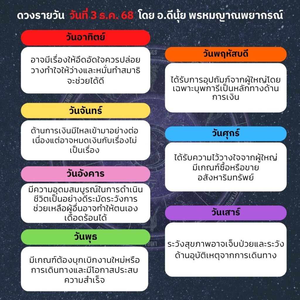 ดวงประจำวันวันที่ 3 ธันวาคม 2568