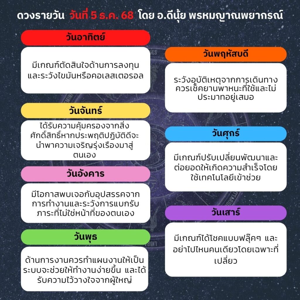 ดวงประจำวันที่ 5 ธันวาคม 2568