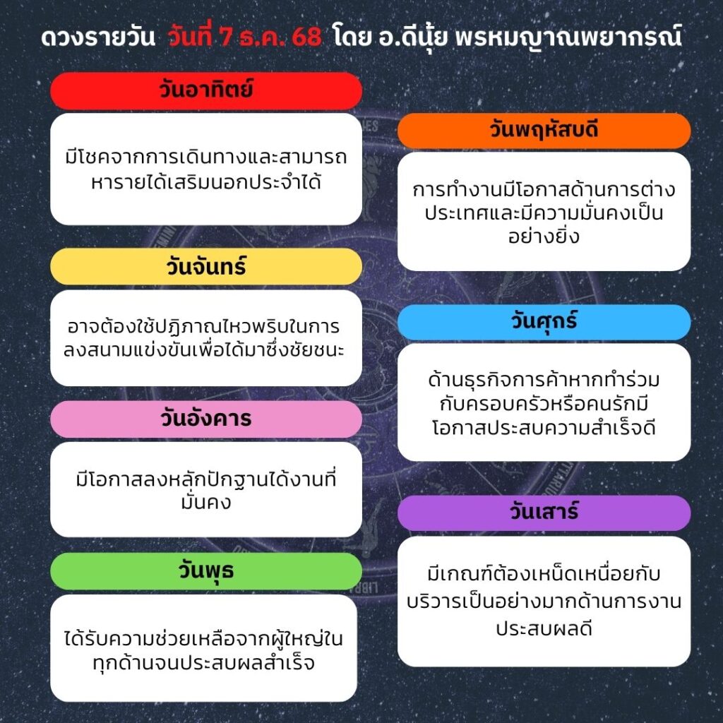 ดวงประจำวันที่ 7 ธันวาคม 2568