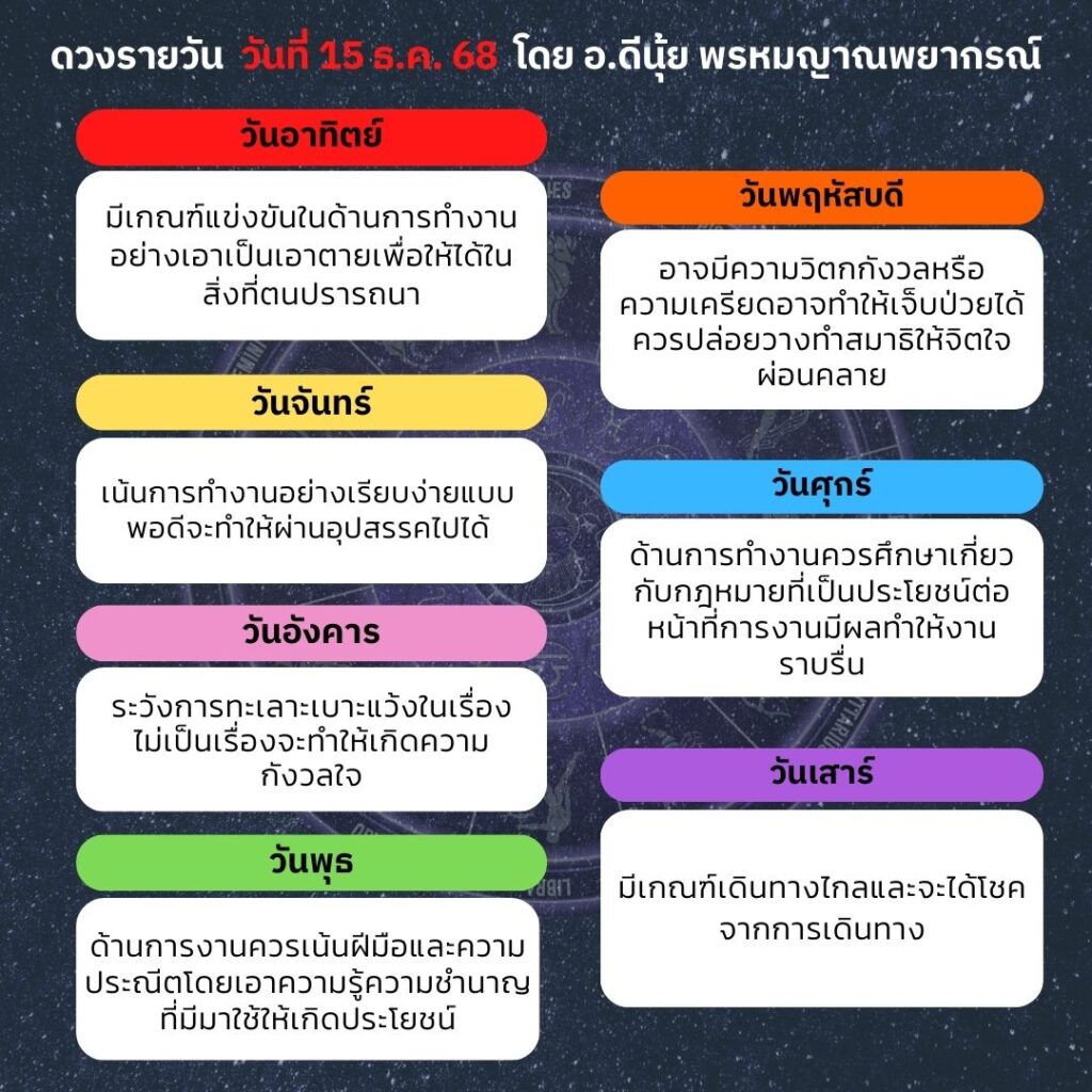 ดวงประจำวันวันที่ 15 ธันวาคม 2568