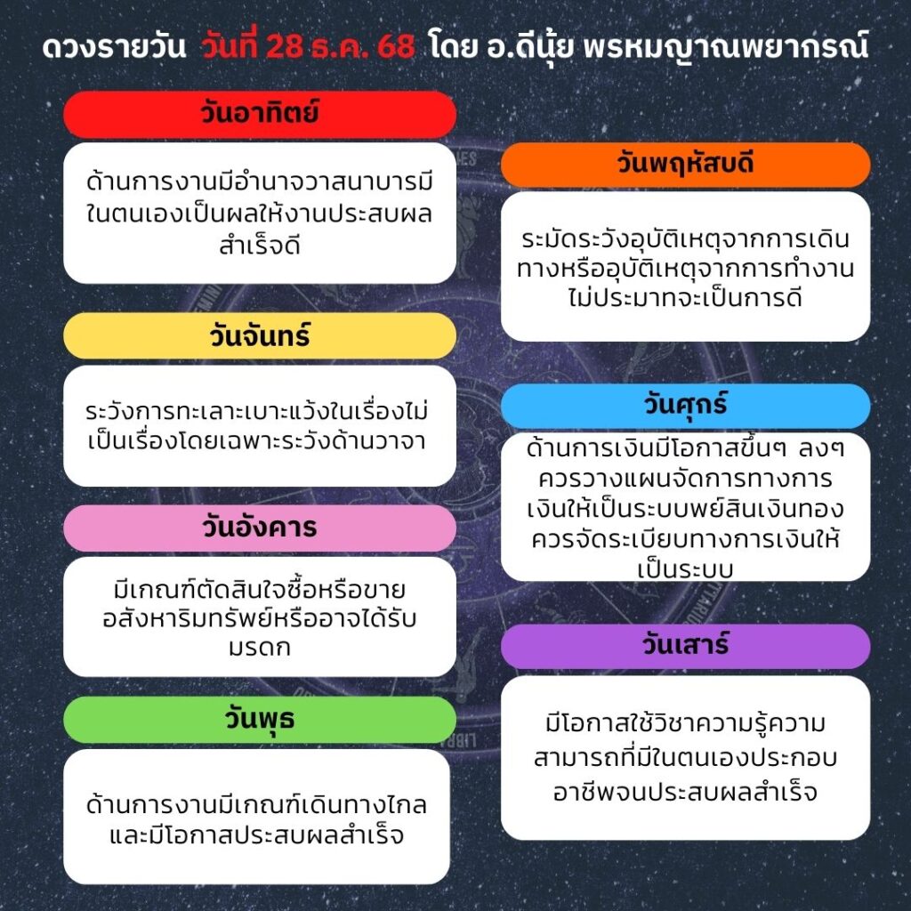 ดวงประจำวันวันที่ 28 ธันวาคม 2568