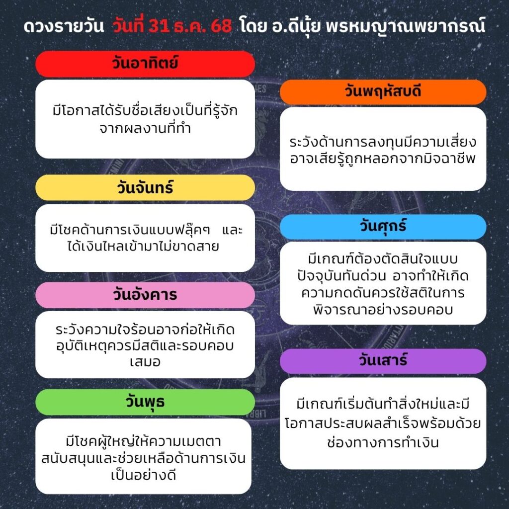 รวมประจำวันวันที่ 31 ธันวาคม 2568
