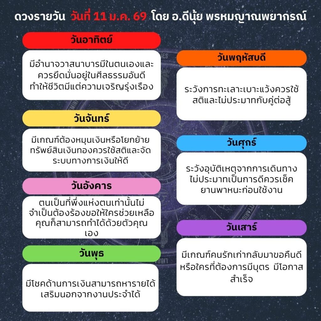 ดวงประจำวันวันที่ 11 มกราคม 2569