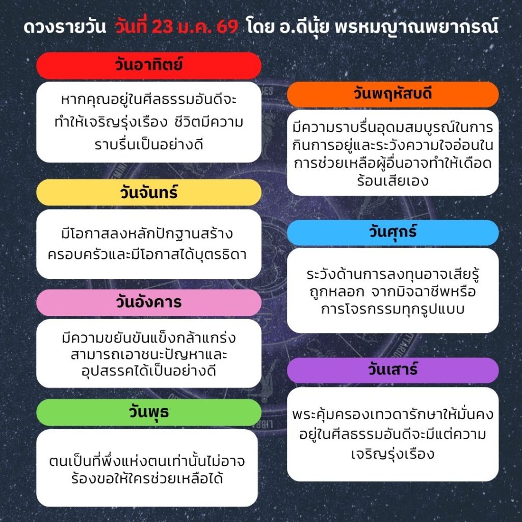 ดวงประจำวันที่ 23 มกราคม 2569
