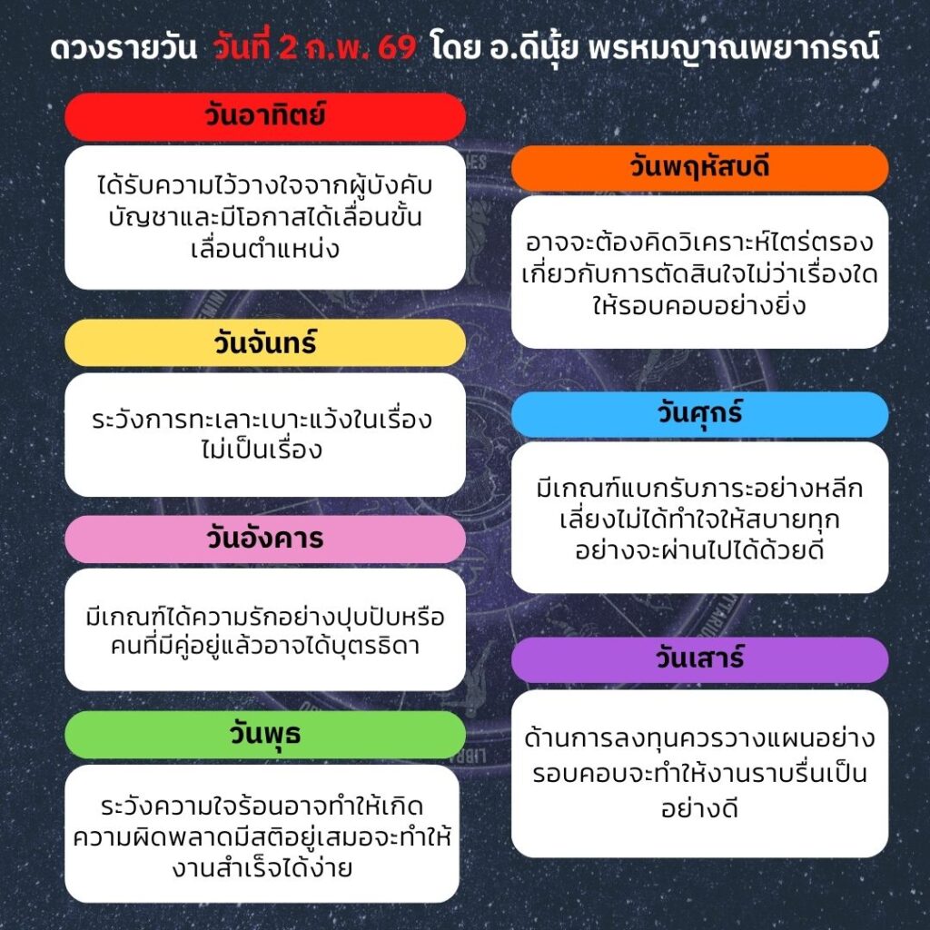 ดวงประจำวันที่ 2 กุมภาพันธ์ 2569