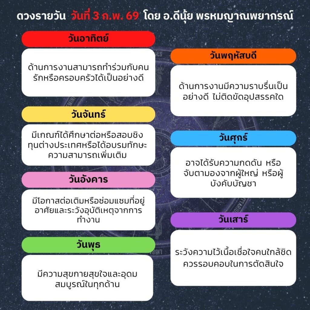 ดวงประจำวันที่ 3 กุมภาพันธ์ 2569