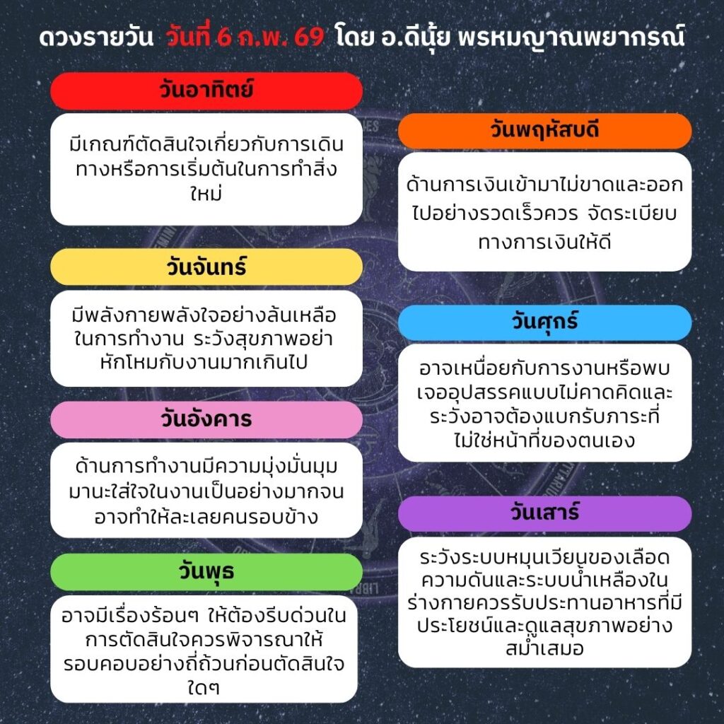 ดวงประจำวันวันที่ 6 กุมภาพันธ์ 2569