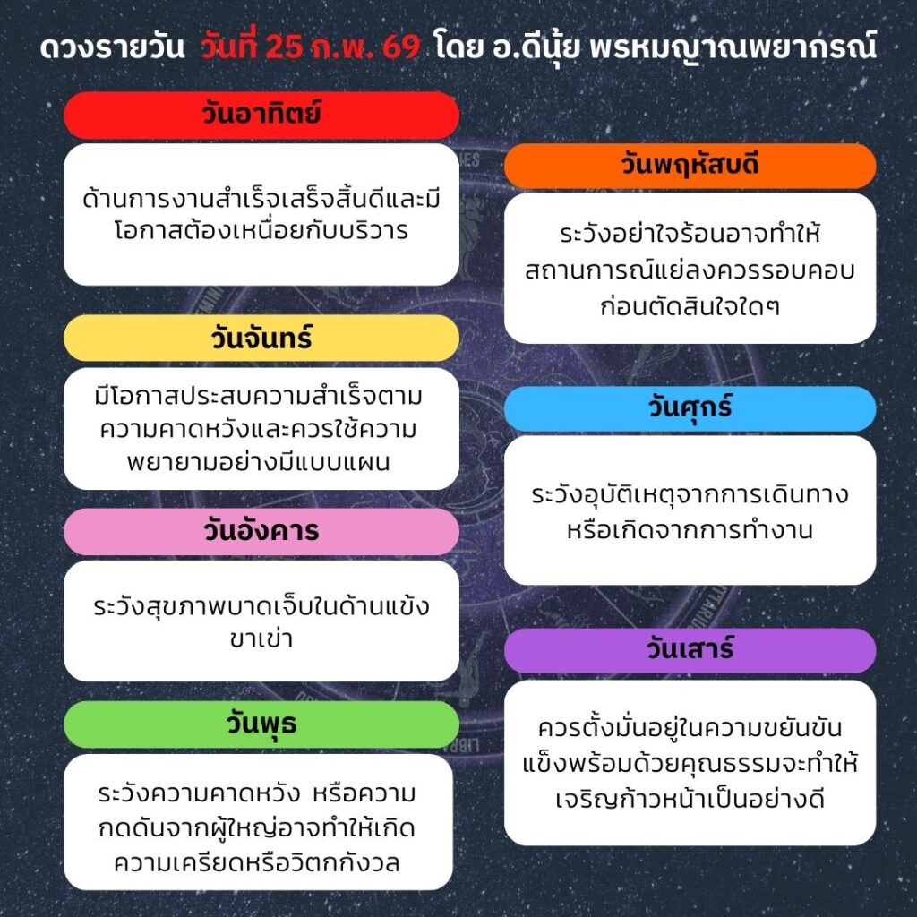 ดวงประจำวันที่ 25 กุมภาพันธ์ 2569