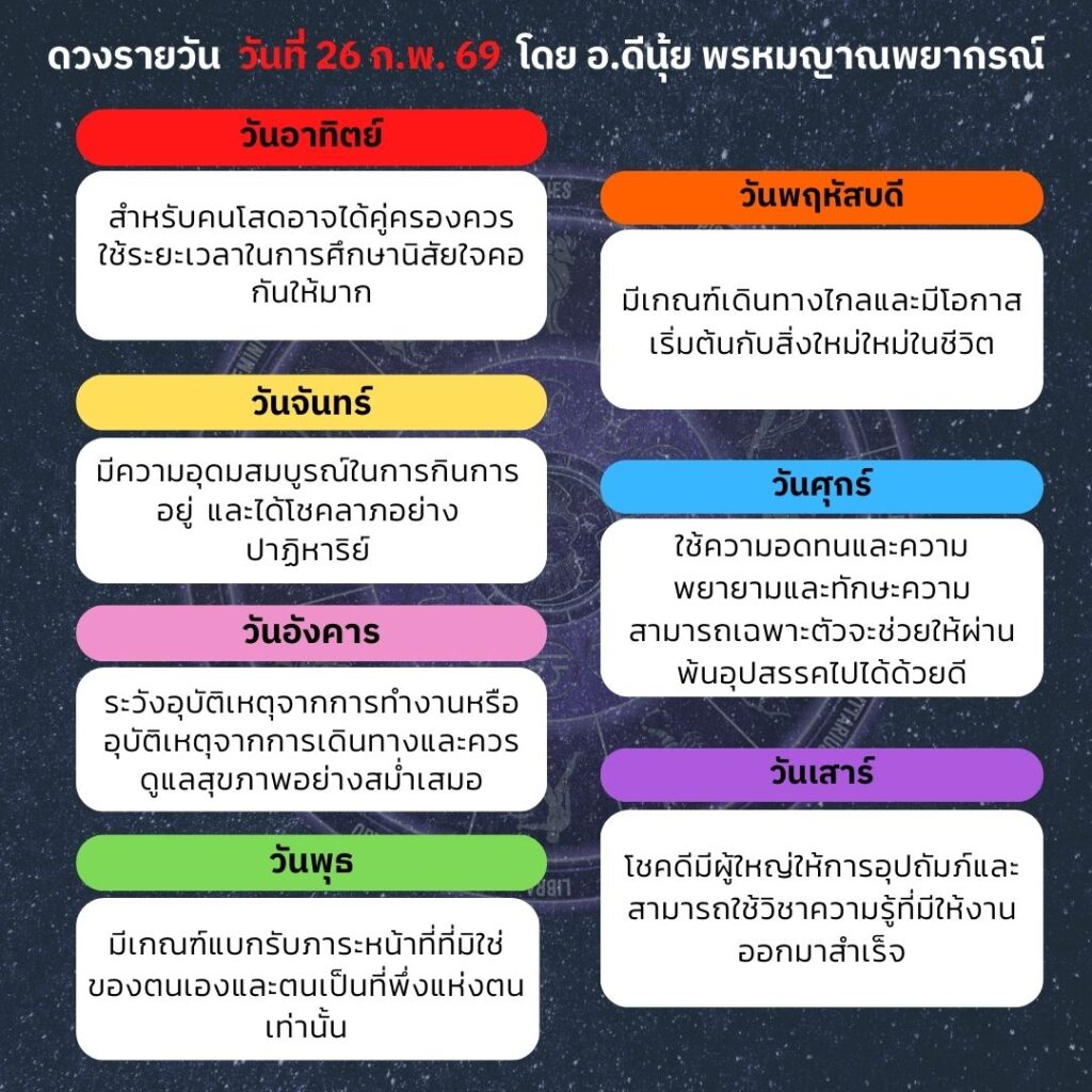ดวงประจำวันที่ 26 กุมภาพันธ์ 2569