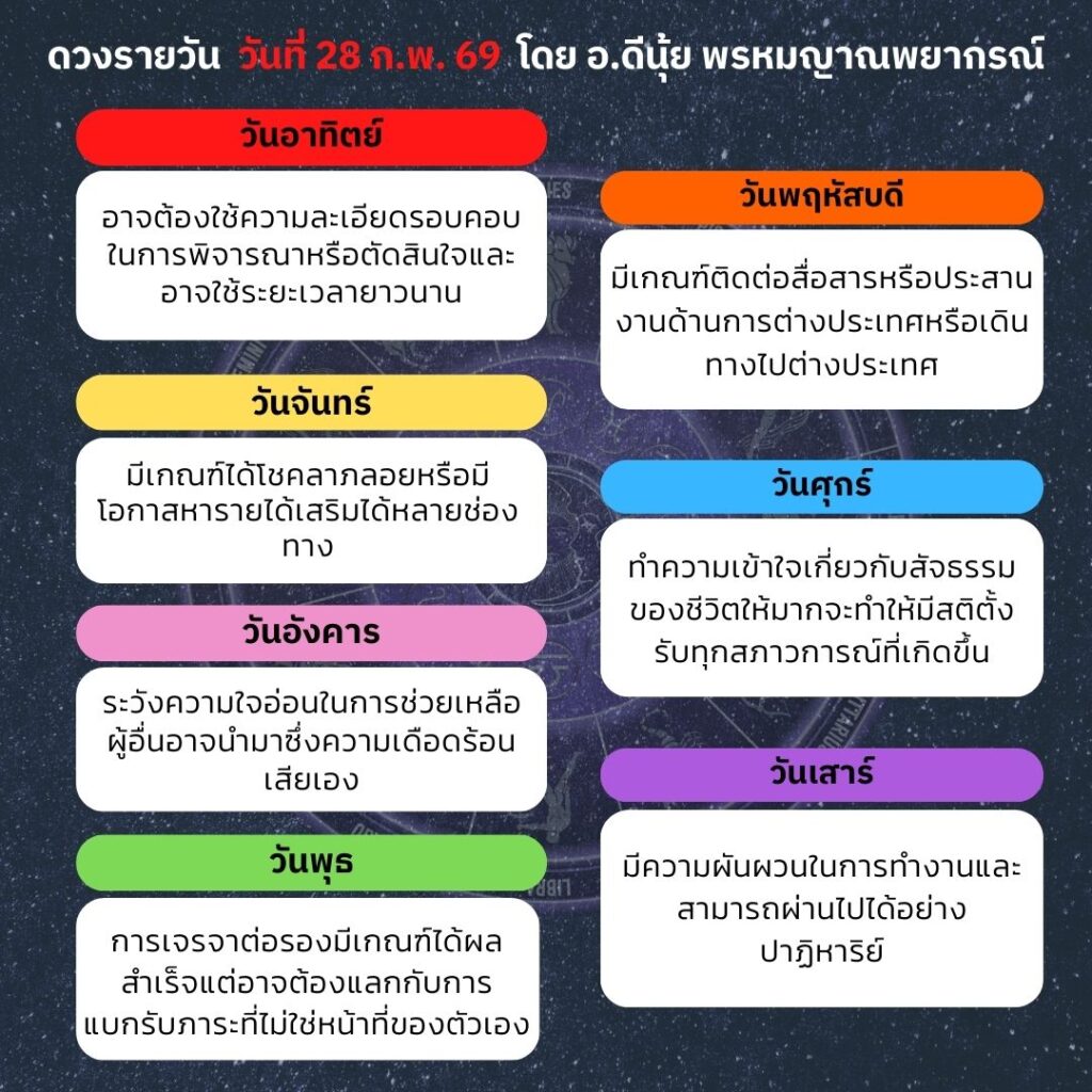 ดวงประจำวันวันที่ 28 กุมภาพันธ์ 2569