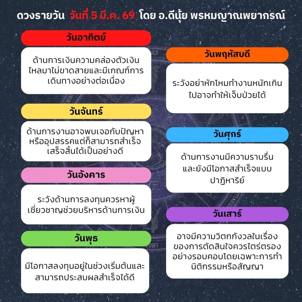 ดวงประจำวันวันที่ 5 มีนาคม 2569