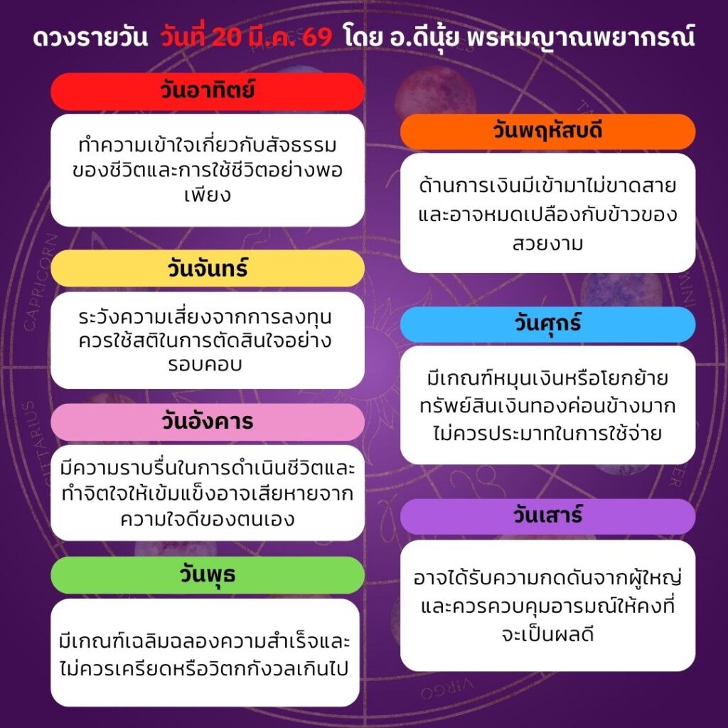 ดวงประจำวันที่ 20 มีนาคม 2569