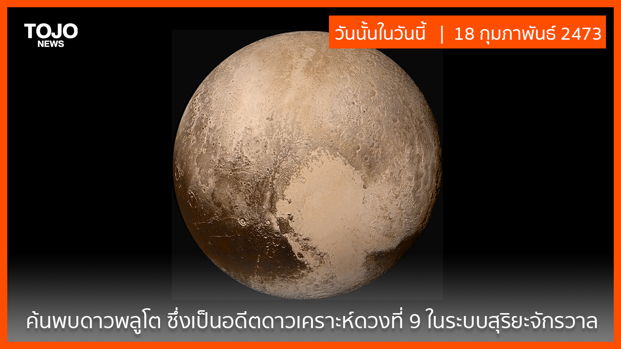 สำนักข่าวโตโจ้นิวส์รายงาน วันนั้นในวันนี้ 18 กุมภาพันธ์ พ.ศ.2473 ไคลด์ ทอมแบจ นักดาราศาสตร์ชาวอเมริกัน ได้ค้นพบดาวพลูโต ซึ่งเป็นอดีตดาวเคราะห์ดวงที่ 9 ในระบบสุริยะจักรวาล ดาวพลูโตเป็นดาวเคราะห์ดวงเดียวในระบบสุริยะจักรวาลที่ยังไม่เคยถูกสำรวจโดยยานอวกาศแบบใกล้ชิด จนเมื่อปี พ.ศ. 2549 ดาวพลูโตได้ถูกลดขั้นให้เหลือเพียงดาวเคราะห์แคระเท่านั้น ทำให้ในตอนนี้ในระบบสุริยะเหลือดาวเคราะห์ 8 ดวงเท่านั้น