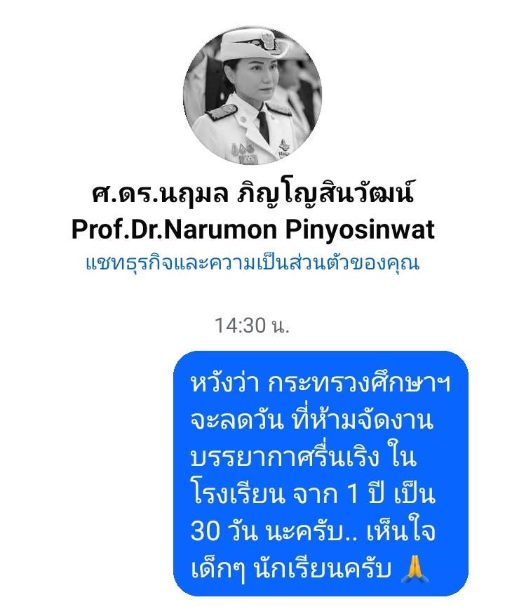 อ.เจษฎา ชี้กรณีกระทรวงศึกษาฯ ห้ามจัดงานรื่นรมย์ ในโรงเรียน 1 ปี ขอนฤมล พิจารณาใหม่ เป็น 30 วัน
