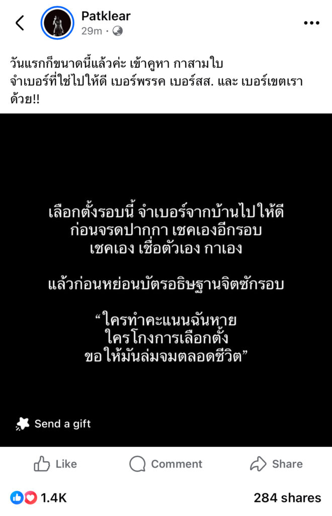 วันแรกก็ขนาดนี้แล้ว! แพท วง KLEAR แนะ อธิษฐานก่อนหย่อนบัตรเลือกตั้ง