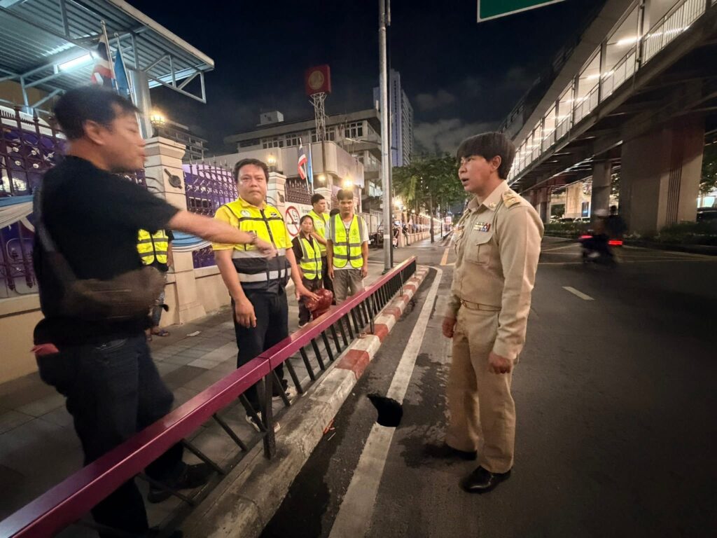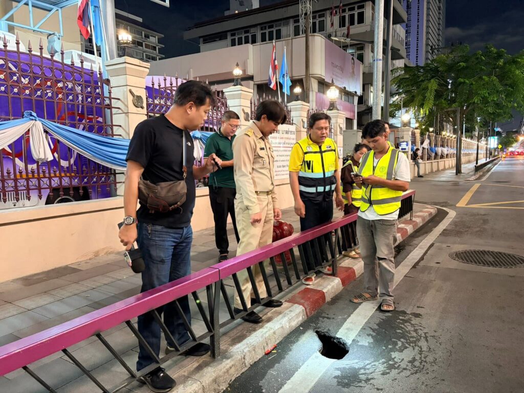 เขตปทุม ตรวจสอบพื้นที่หลุมยุบ ตรงข้ามเซ็นทรัลเวิล์ด พร้อมเผยสาเหตุที่ทำให้เกิดหลุมยุบ