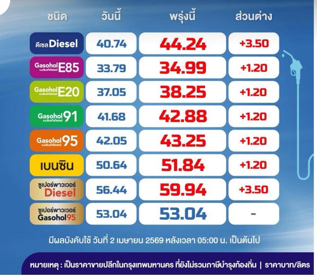 มีผล 2 เม.ย. 2569 เวลา 05.00 น. เป็นต้นไป