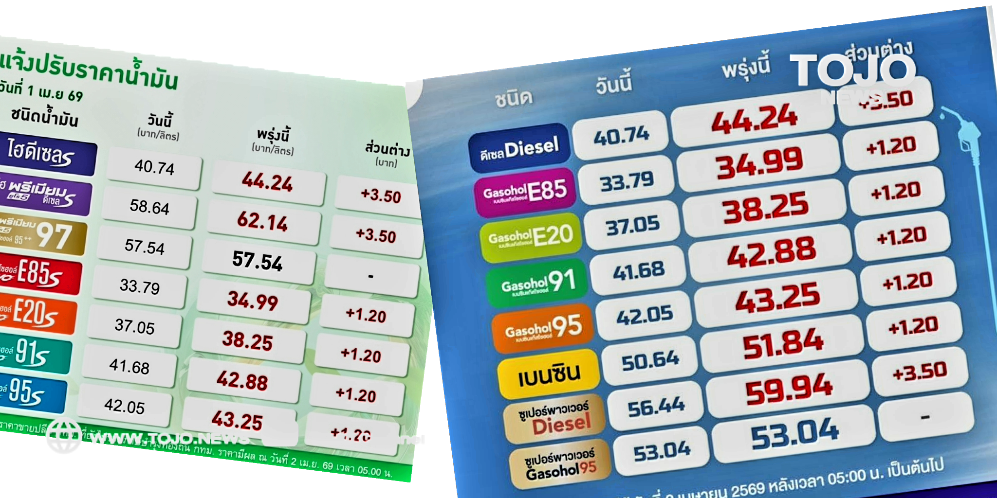 ผู้สื่อข่าวโตโจ้นิวส์รายงาน วันที่ 2 เม.ย.69 มีประกาศปรับราคาน้ำมัน PTT Station และ บางจาก ปรับราคาขายปลีกน้ำมันกลุ่ม