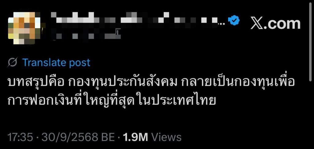 ผู้สื่อข่าวโตโจ้นิวส์รายงานว่า จากกรณีมีโซเชียลตั้งคำถามถึงกองทุนประกันสังคม โดยระบุว่า กลายเป็นกองทุนเพื่อการฟอกเงินที่ใหญ่ที่สุดในประเทศไทย