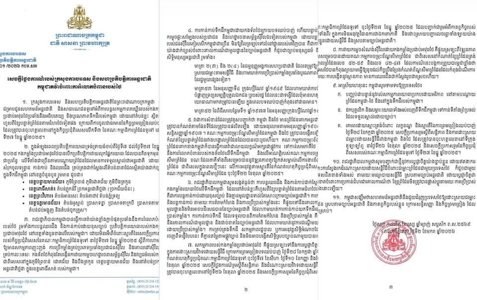 ด่วน!! กัมพูชาออกเอกสารประท้วง กล่าวหาไทยรุกล้ำดินแดน 4 จังหวัด ละเมิด MOU 2543 กฎบัตรสหประชาชาติ และอนุสัญญาเจนีวา เรียกร้องให้ไทยยุติการกระทำทางทหารและการก่อสร้างทั้งหมดทันที! และให้ถอนกำลังพล ยุทโธปกรณ์ออกจากพื้นที่