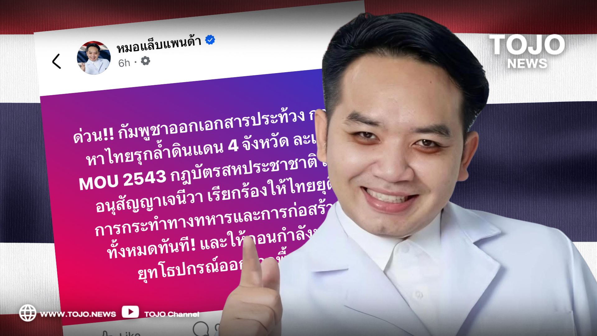 หมอแล็บแพนด้า เปิด หนังสือประท้วงกัมพูชา เรียกร้องไทยละเมิด MOU 43 รุกล้ำดินแดน 4 จังหวัด