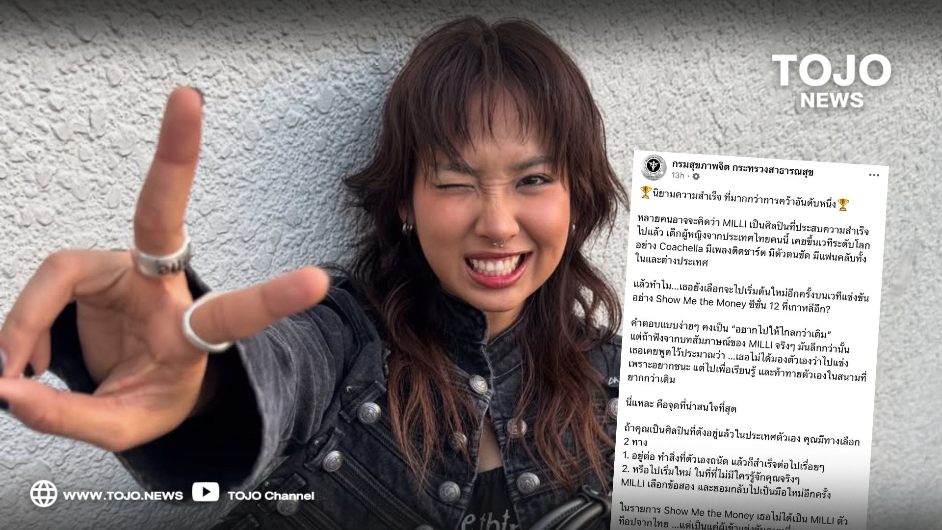 ผู้สื่อข่าวโตโจ้นิวส์รายงานว่า เพจเฟซบุ๊ก กรมสุขภาพจิต กระทรวงสาธารณสุข โพสต์ข้อความถึง มิลลิ แร็ปเปอร์สาวชาวไทยที่เข้าประกวดฮิปฮอปชื่อดังแห่งเกาหลีใต้ Show Me The Money 12 และคว้าอันดับที่ 4 มาได้