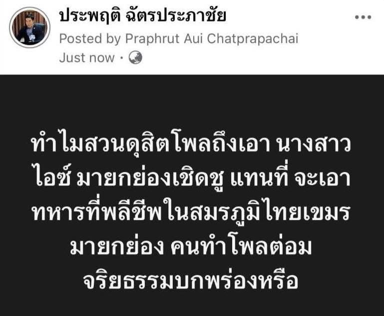 ผู้สื่อข่าวโตโจ้นิวส์รายงานว่า จากกรณีนายประพฤติ ฉัตรประภาชัย อดีตว่าที่ผู้สมัคร สส.พรรคประชาธิปัตย์ โพสต์ข้อความผ่านเฟซบุ๊ก ระบุว่า