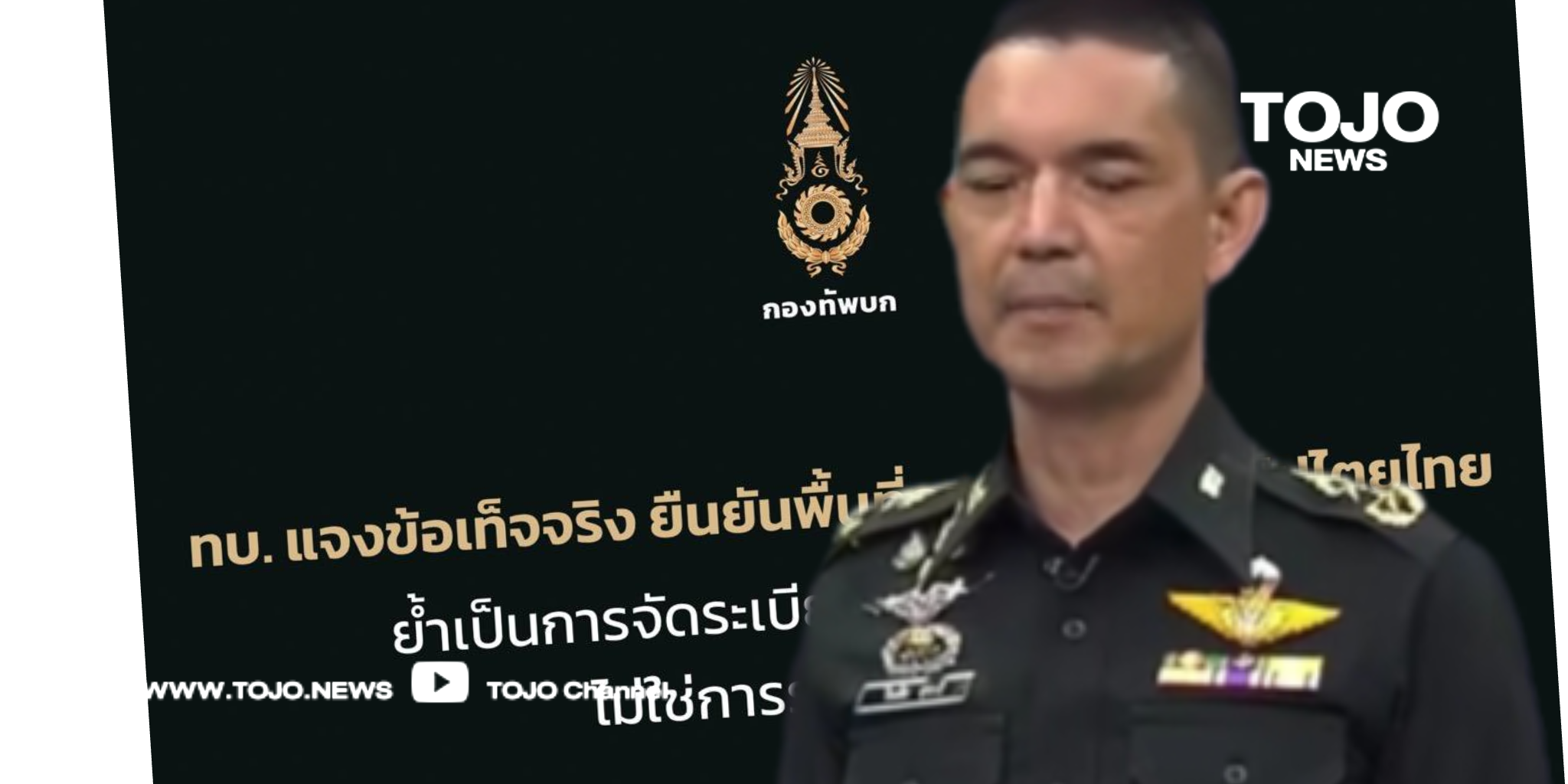 ทบ. แจงข้อเท็จจริง ยืนยันพื้นที่ควบคุมอยู่ในอธิปไตยไทย ย้ำเป็นการจัดระเบียบพื้นที่ที่เคยถูกรุกล้ำ ไม่ใช่การรุกรานกัมพูชา