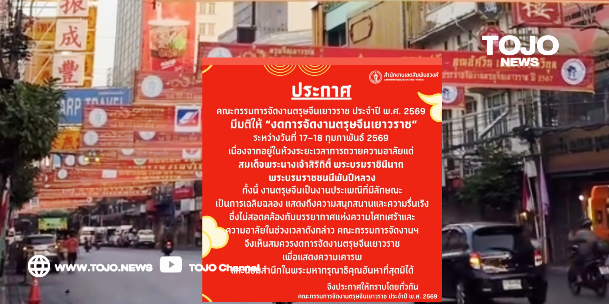 ผู้สื่อข่าวโตโจ้นิวส์รายงานว่า คณะกรรมการจัดงานตรุษจีนเยาวราช ประจำปี พ.ศ. 2569 มีมติให้ “งดการจัดงานตรุษจีนเยาวราช” ระหว่างวันที่ 17–18 กุมภาพันธ์ 2569