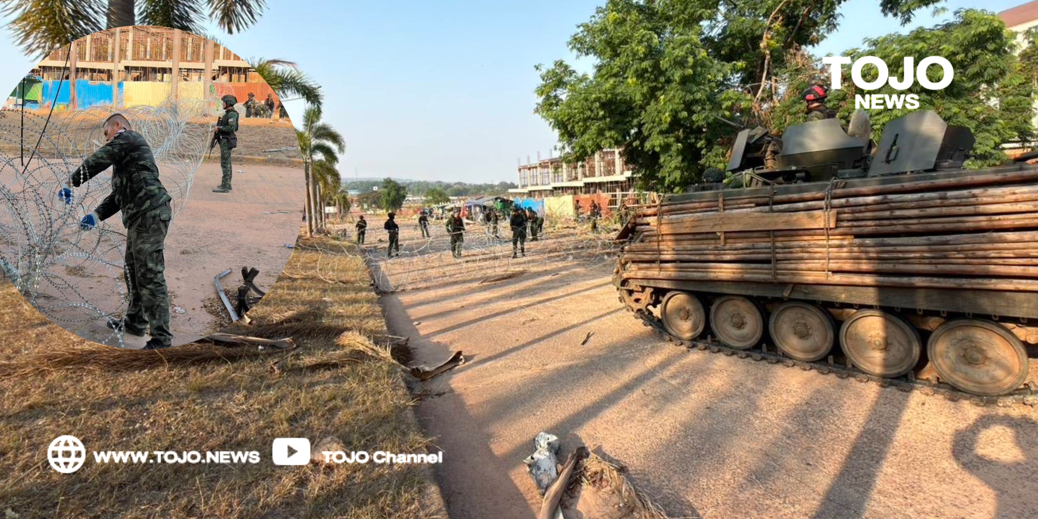 ทบ.วางกำลังรถสายพาน เสริมแนวลวดหนามพร้อม ป้องปรามบริเวณช่องจอม จ.สุรินทร์ หลังพบทหารกัมพูชาขาดวินัยเข้ายั่วยุ