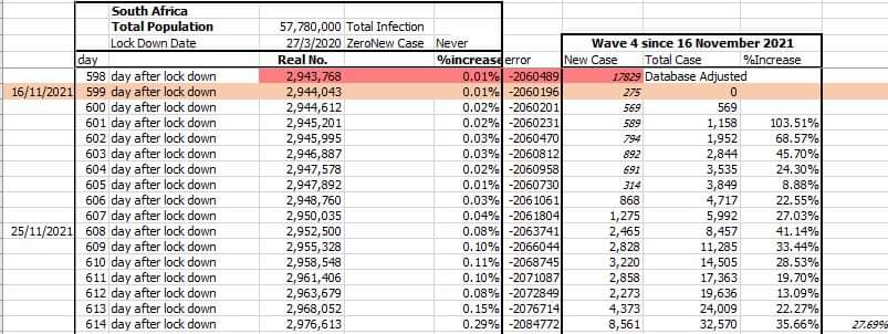 ตอนนี้การระบาดของ Omicron ใน S.Africa มีระดับ Exponential ที่มี %Increase 27% หรือมี Doubling Day แค่ 3 วัน ทั้งที่อยู่ใน New Normal