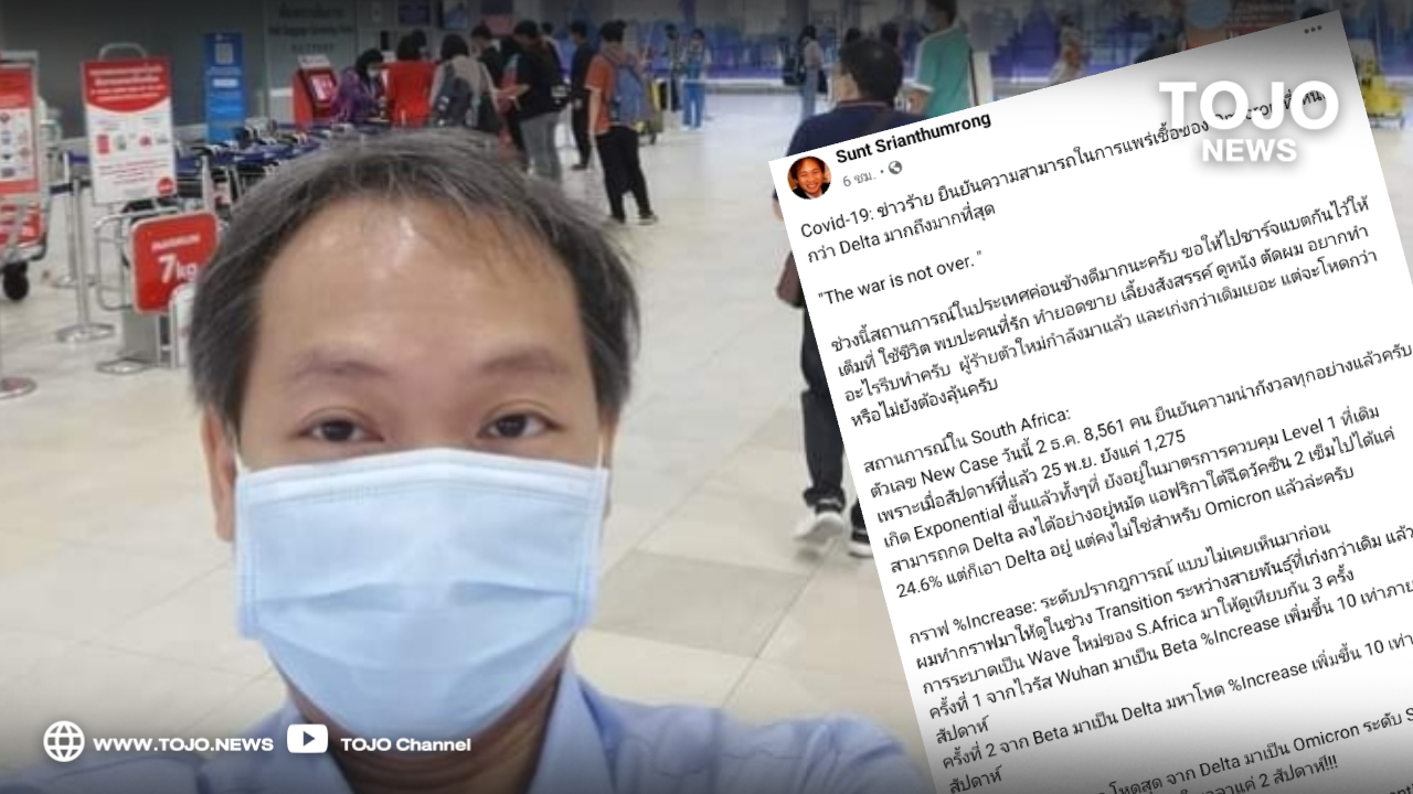 ผู้สื่อข่าวโตโจ้นิวส์รายงานว่า ดร.สันต์ ศรีอรรฆ์ธำรง อาจารย์พิเศษคณะบริหารการพัฒนาสิ่งแวดล้อม มหาวิทยาลัยพัฒนบริหารศาสตร์ (นิด้า) โพสต์ผ่านเฟซบุ๊กระบุ “Covid-19: ข่าวร้าย ยืนยันความสามารถในการแพร่เชื้อของ Omicron ที่เหนือกว่า Delta มากถึงมากที่สุด “The war is not over.”
