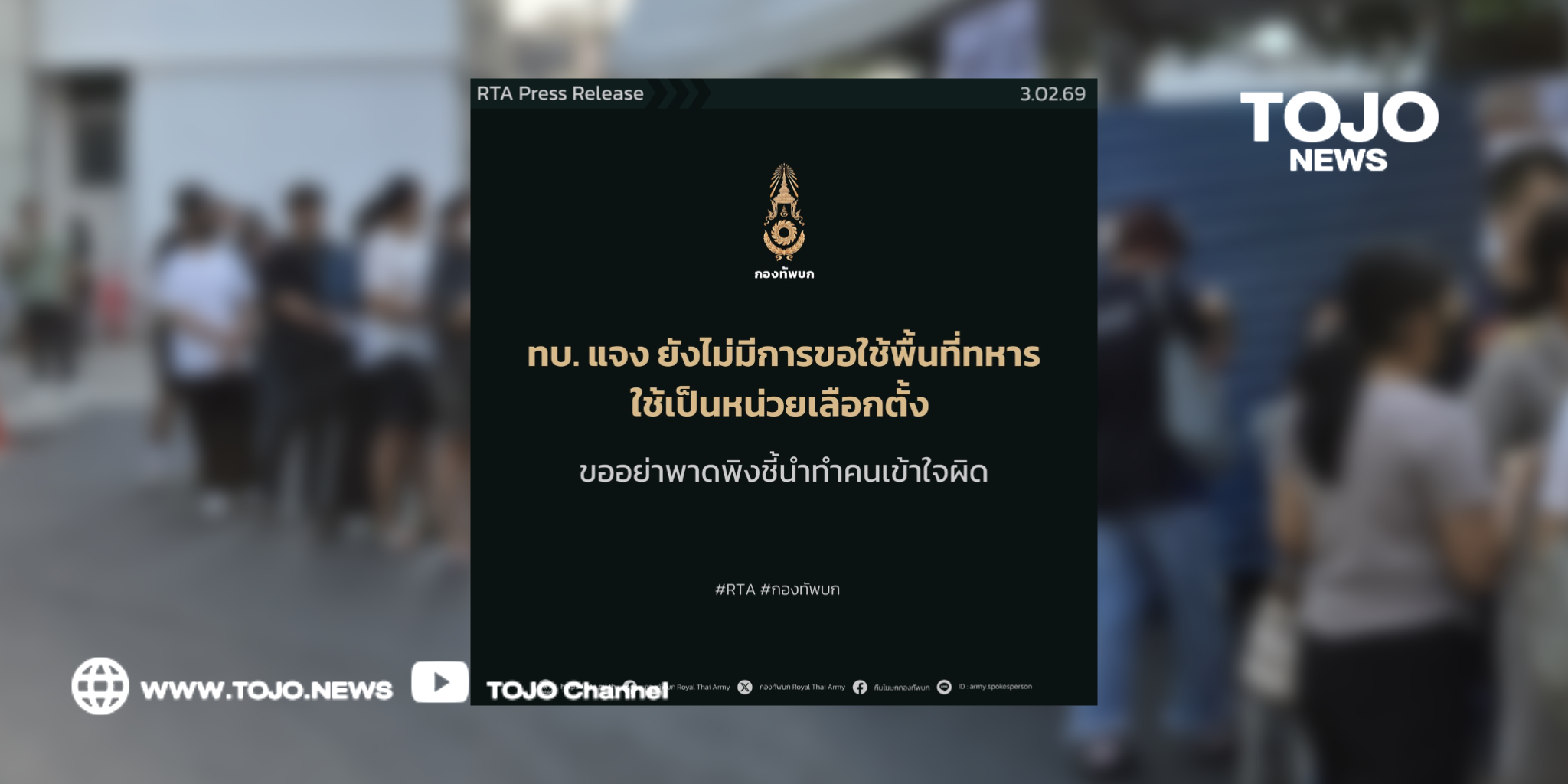 กองทัพบกแจงยังไม่มีการขอใช้พื้นที่ทหารใช้เป็นหน่วยเลือกตั้ง ขออย่าพาดพิงชี้นำทำคนเข้าใจผิด