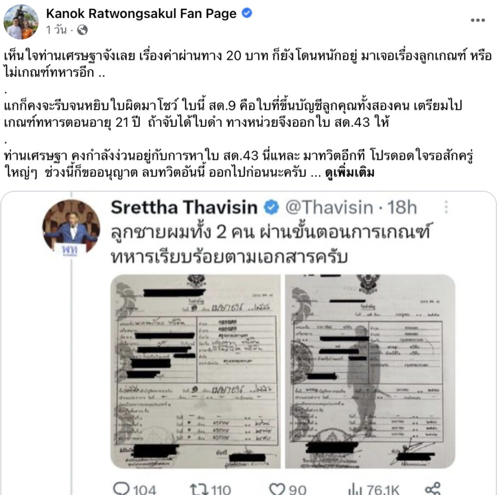 กนก จับโป๊ะ เศรษฐา!! โชว์ใบ สด.9 ลูกเกณฑ์ทหารแล้ว ลั่น! คงกำลังง่วนอยู่กับการหาใบ สด.43