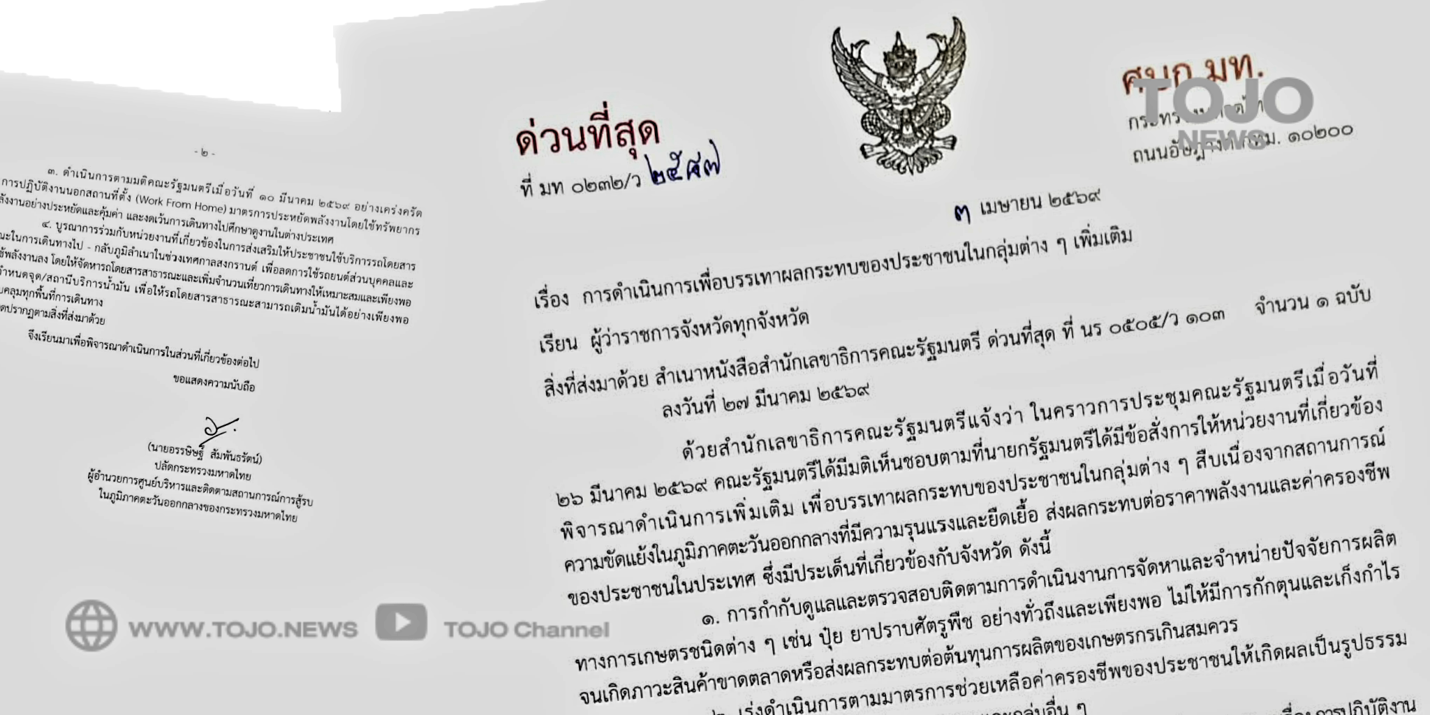 ผู้สื่อข่าวโตโจ้นิวส์รายงานว่า วันที่ (3 เม.ย. 69) นายอรรษิษฐ์ สัมพันธรัตน์ ปลัดกระทรวงมหาดไทย ในฐานะผู้อำนวยการศูนย์บริหารและติดตามสถานการณ์การสู้รบในภูมิภาคตะวันออกกลางของกระทรวงมหาดไทย (ศบก.มท.) เปิดเผยว่า กระทรวงมหาดไทยได้ขานรับนโยบายเร่งด่วนของรัฐบาลตามมติคณะรัฐมนตรี เมื่อวันที่ 26 มีนาคม 2569 ซึ่งนายอนุทิน ชาญวีรกูล นายกรัฐมนตรีและรัฐมนตรีว่าการกระทรวงมหาดไทย ได้สั่งการให้เร่งยกระดับมาตรการช่วยเหลือพี่น้องประชาชนจากผลกระทบของสถานการณ์ความขัดแย้งในภูมิภาคตะวันออกกลางที่ยังคงยืดเยื้อ ซึ่งส่งผลกระทบโดยตรงต่อเสถียรภาพราคาพลังงานและภาระค่าครองชีพของพี่น้องประชาชนในวงกว้าง