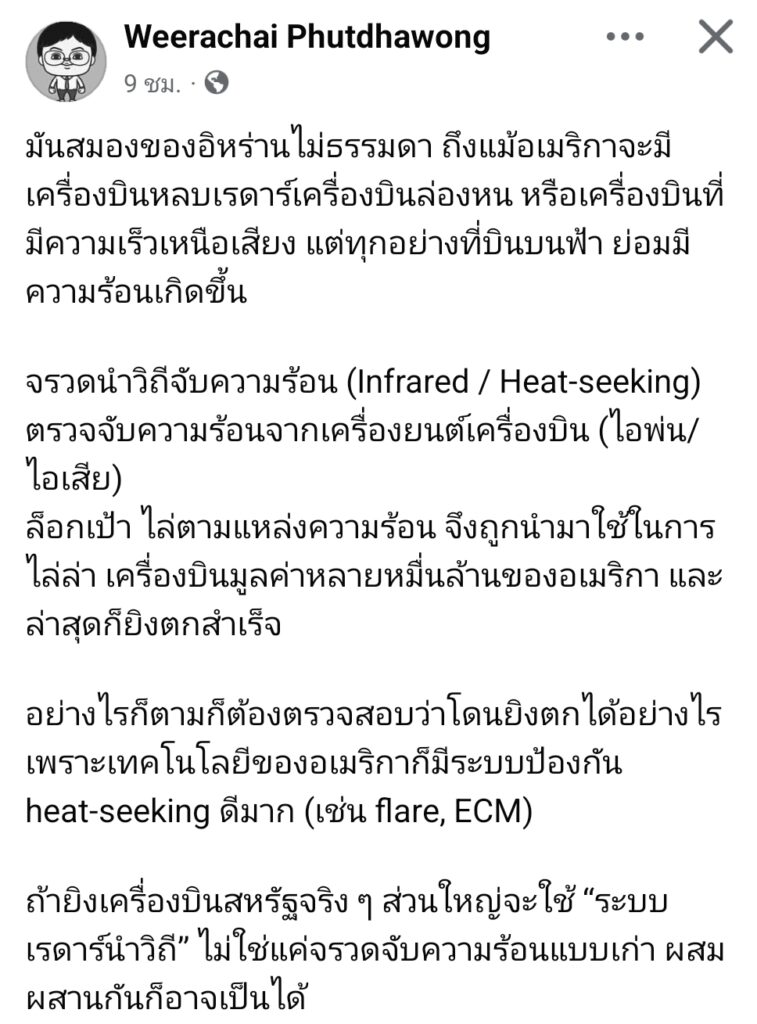 ดร.วีรชัย เผย อิหร่าน ล็อกเป้า ไล่ตามแหล่งความร้อน จึงถูกนำมาใช้ในการไล่ล่า เครื่องบินมูลค่าหลายหมื่นล้านของอเมริกา