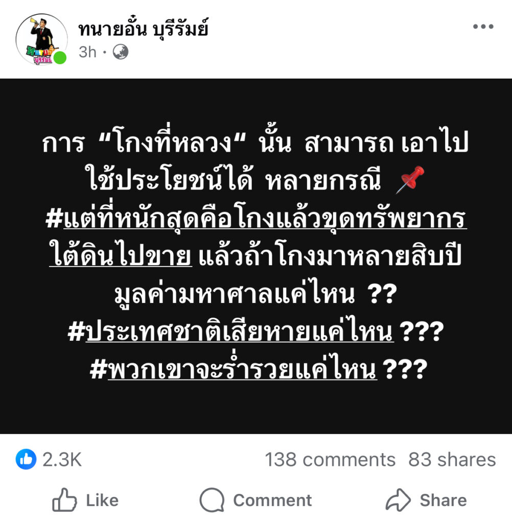 แต่ที่หนักสุดคือโกงแล้วขุดทรัพยากรใต้ดินไปขาย แล้วถ้าโกงมาหลายสิบปีมูลค่ามหาศาลแค่ไหน ??