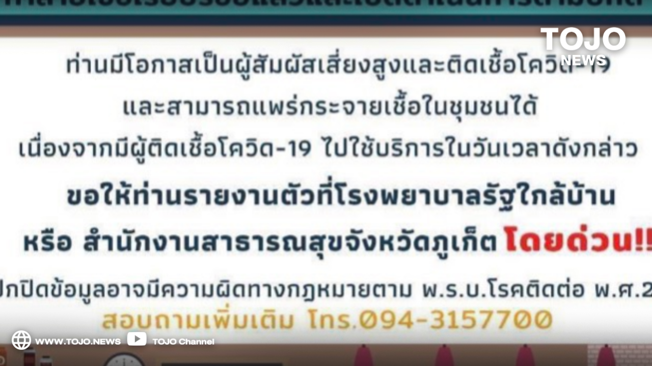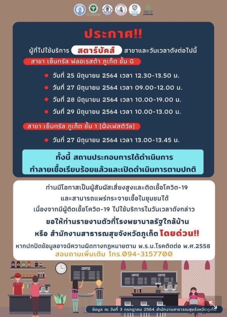 สสจ.ภูเก็ต แจ้งเตือน ประชาชนที่ไปร้านกาแฟ ในห้าง ให้พบแพทย์โดยด่วน ท่านเสี่ยงติดเชื้อโควิด