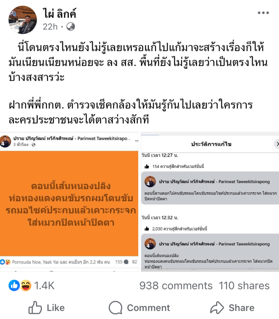 ผู้สื่อข่าวโตโจ้นิวส์รายงานว่า จากกรณีปริญวัฒน์ ทวีกิจศิรพงษ์ ผู้สมัคร สส.กำแพงเพชร เขต 1 โพสต์ข้อความผ่านเฟซบุ๊ก ระบุว่า ตอนนี้เส้นหนองปลิง ท่อทองแดงคนขับรถผมโดนขับ รถมอไซค์ประกบแล้วเคาะกระจก ใส่หมวกปิดหน้าปิดตา